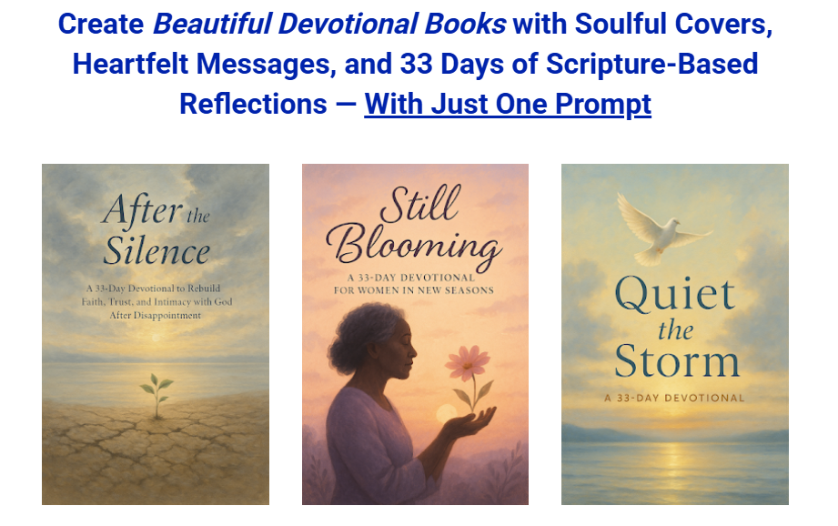 It’s a complete creative system that helps you create and publish devotional books — one 33-day devotional at a time — using just one AI prompt.