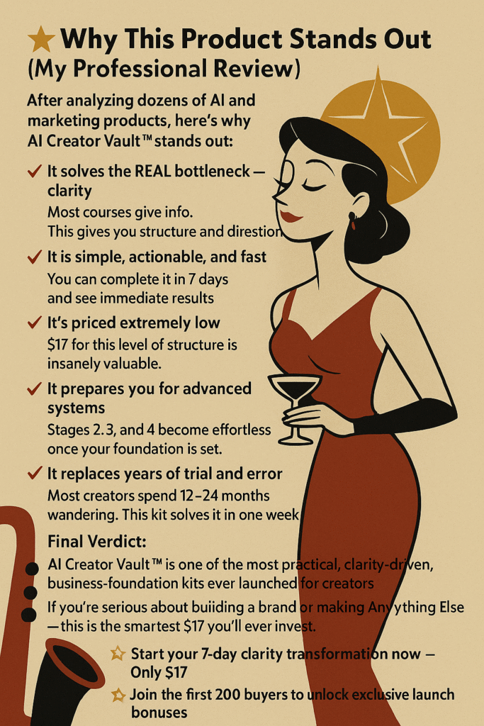 AI Creator Vault™ is one of the most practical, clarity-driven, business-foundation kits ever launched for creators.